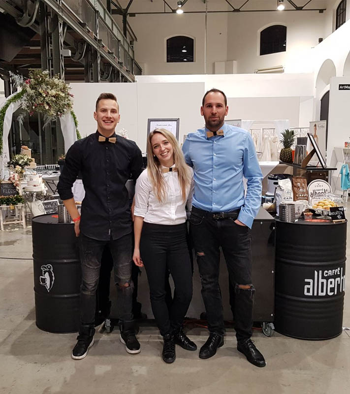 Snažil jsem se vždy nakupovat ty nejlepší výrobky, a tak jsem se vydal na veletrh kávy do Itálie. Seznámil jsem se s rodinou z Torína, která na veletrhu propagovala svoji rodinnou pražírnu. Po ochutnání jejich espressa jsem věděl, že takovou kávu chci pít a prodávat svým zákazníkům u nás v ČR. Tím jsem začal s distribucí a prodejem kávy značky Alberto, která je od roku 1961 rodinnou pražírnou. Podniku se dařilo a poptávka lidí po cateringových službách rostla. Jako první jsme si nechali vyrobit bary a začali jsme jezdit jako barmani a následně jsme služby rozšířili o kafé catering. V této skvěle fungující kombinaci jsme objezdili mnoha festivalů. Nakonec jsme spojili síly s dalšími fajn lidmi a vytvořili celkový catering. Každá cateringová akce je pro nás velká radost.